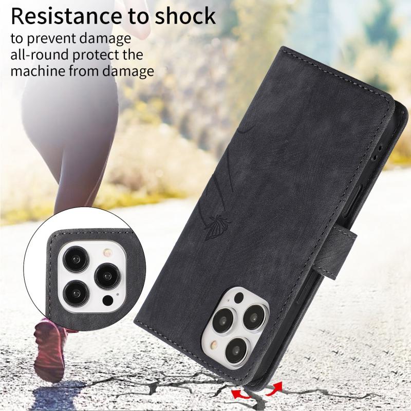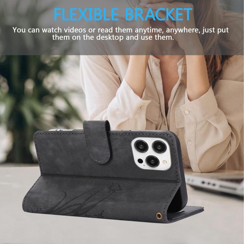 For iPhone 16 Pro Orchid Butterfly Embossed Leather Phone Case(Black)