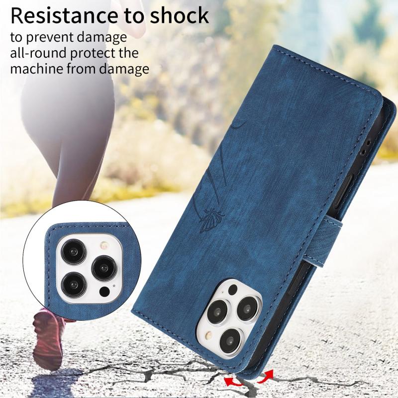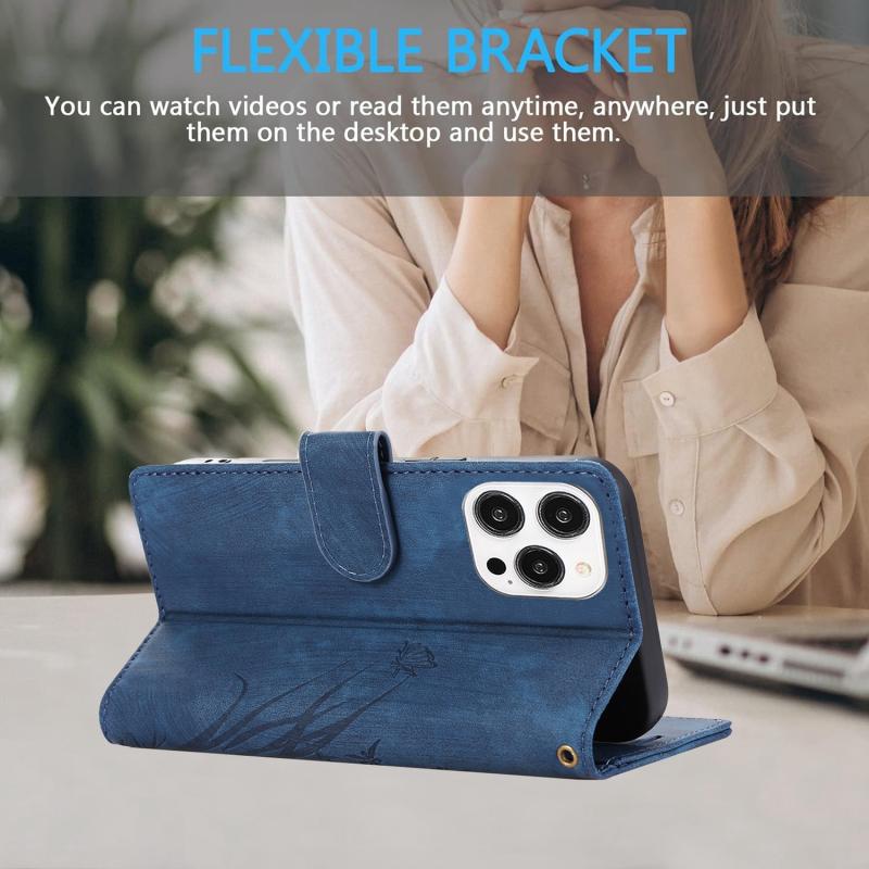For iPhone 16 Pro Orchid Butterfly Embossed Leather Phone Case(Blue)