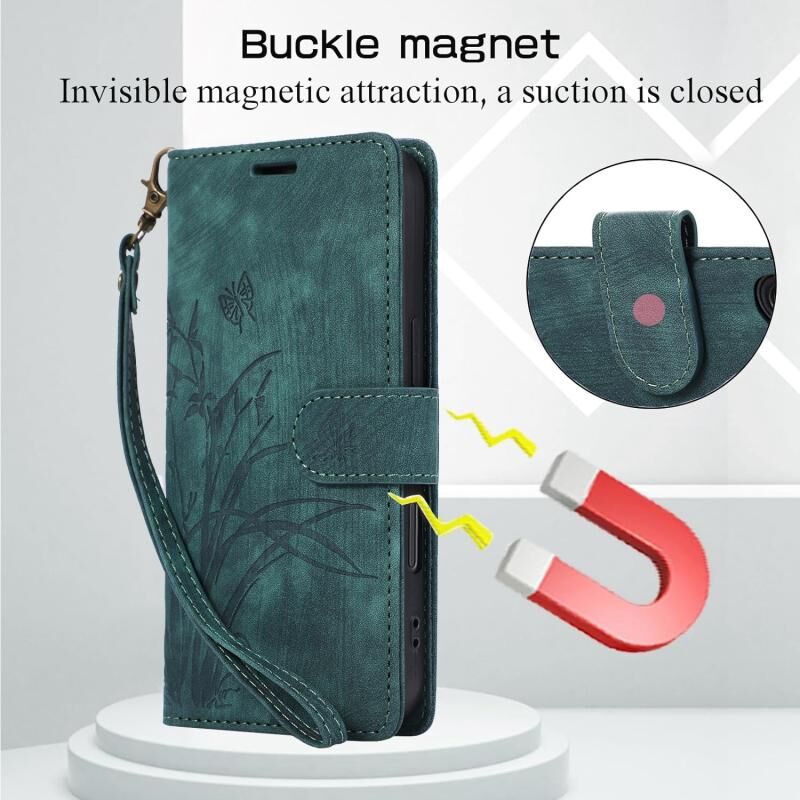 For iPhone 16 Pro Orchid Butterfly Embossed Leather Phone Case(Green)