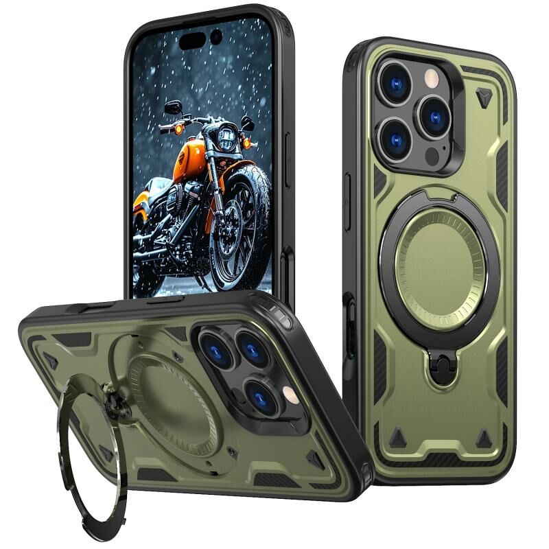 Θήκη τηλεφώνου για iPhone 16 Pro, Υβριδική PC TPU με Ενίσχυση και Δακτύλιο MagSafe (Χακί Πράσινο)