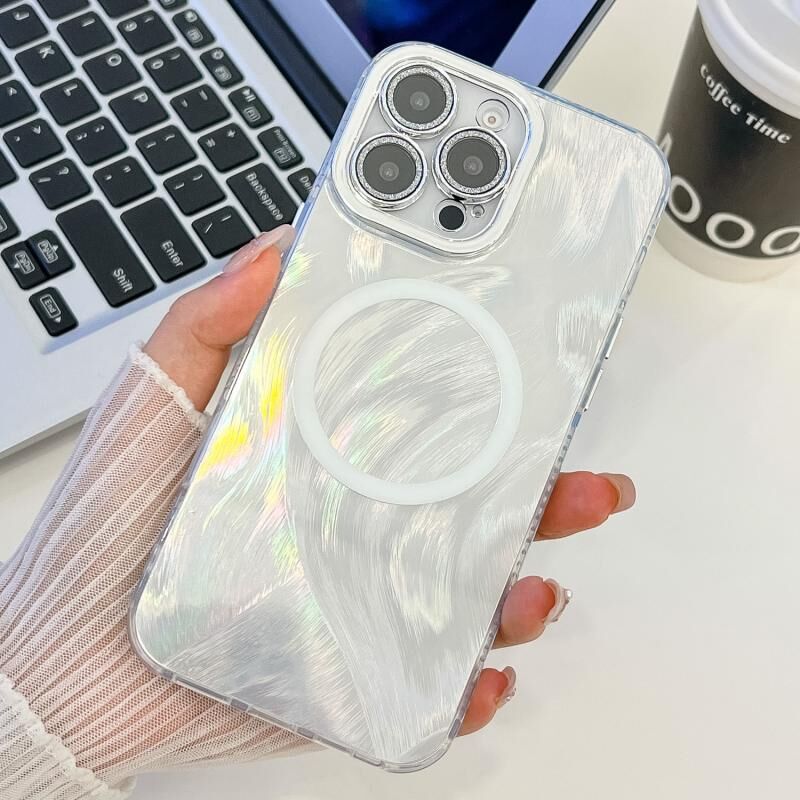 Θήκη τηλεφώνου TPU με επιμετάλλωση, υφή και MagSafe για iPhone 16 Pro με προστατευτική μεμβράνη φακού με γκλίτερ (Λευκά Κύματα Νερού)