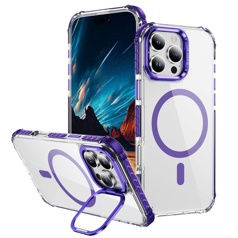 For iPhone 16 Pro Rainbow Series Transparent MagSafe Lens Holder Phone Case(Purple)