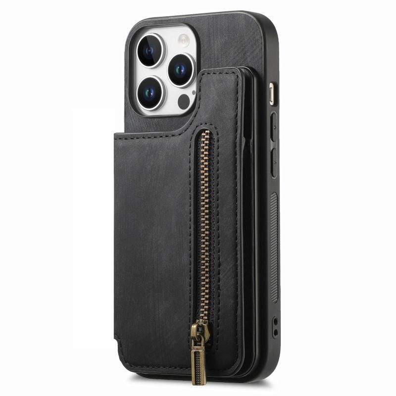 Για iPhone 16 Pro Ρετρό δέρμα φερμουάρ πορτοφόλι πίσω θήκη τηλεφώνου (μαύρο)