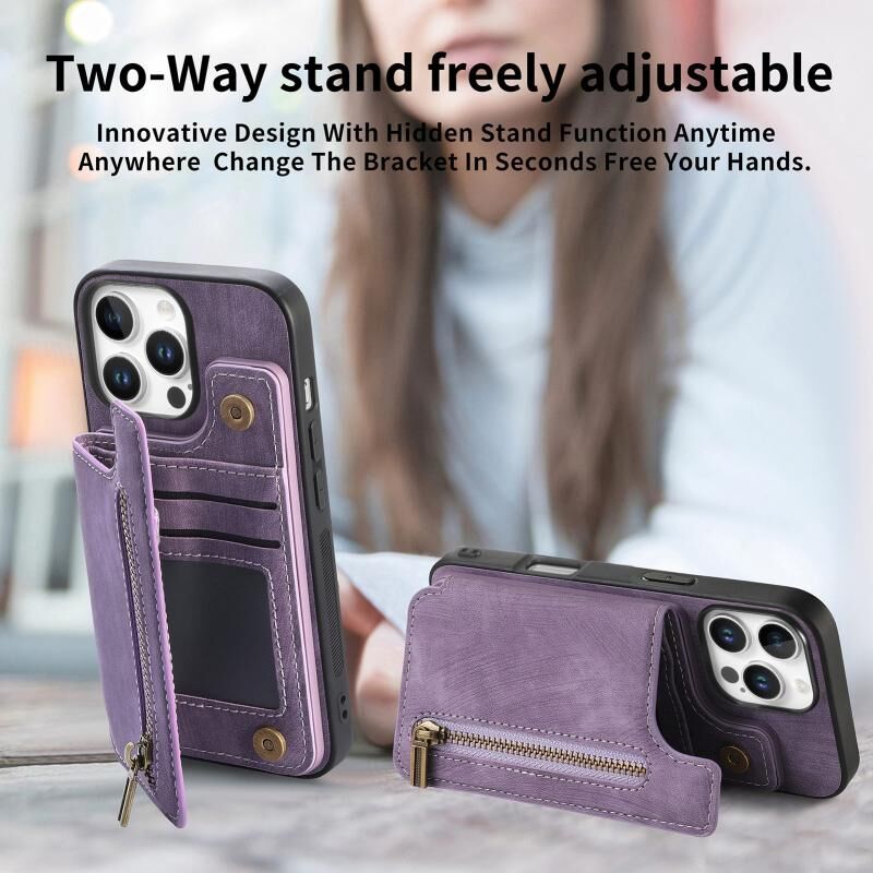Για iPhone 16 Pro Ρετρό δέρμα φερμουάρ πορτοφόλι πίσω υπόθεση τηλεφώνου (μωβ)