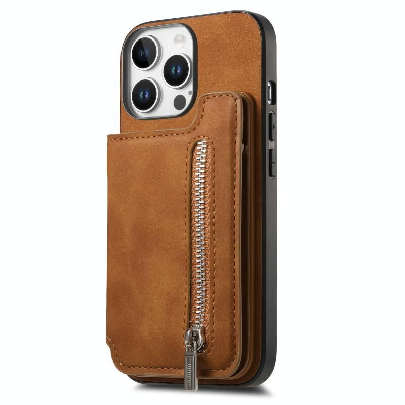 Θήκη κινητού τηλεφώνου για iPhone 16 Pro με ρετρό πορτοφόλι MagSafe και φερμουάρ (Κίτρινο)