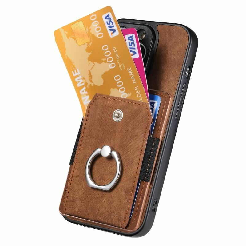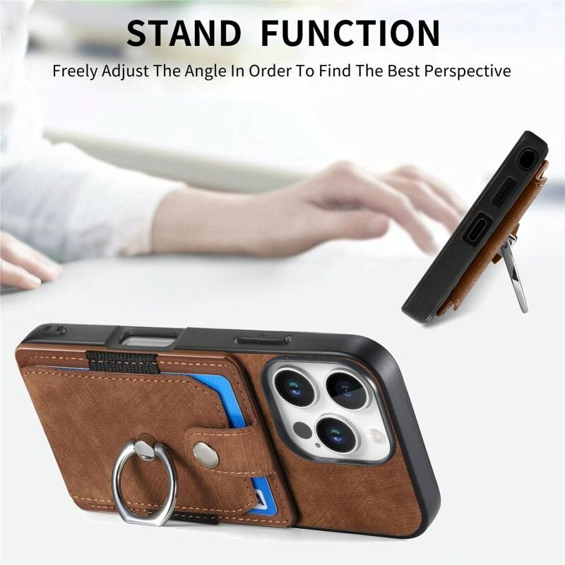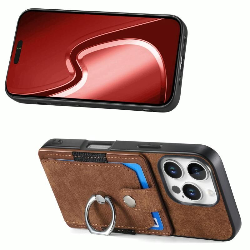 Θήκη κινητού τηλεφώνου με κάρτες και δακτύλιο για iPhone 16 Pro, με ρετρό υφή (Ροζ)