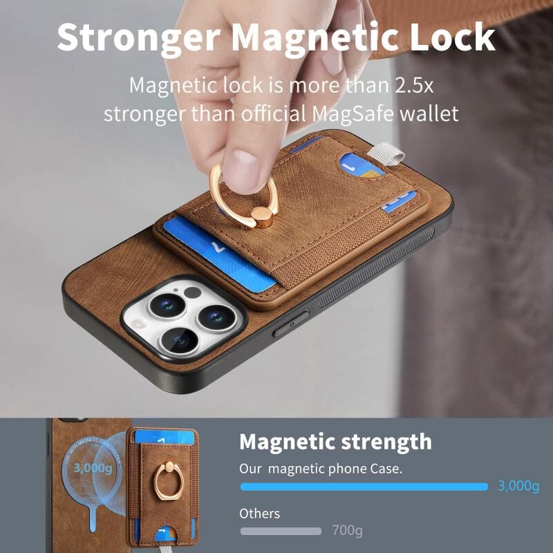 5. Το δερμάτινο πορτοφόλι διαθέτει ισχυρούς ενσωματωμένους μαγνήτες που του επιτρέπουν να κουμπώνει αβίαστα στη θέση του στο πίσω μέρος του τηλεφώνου σας, εύκολο στη χρήση και την αφαίρεση.