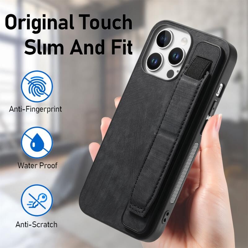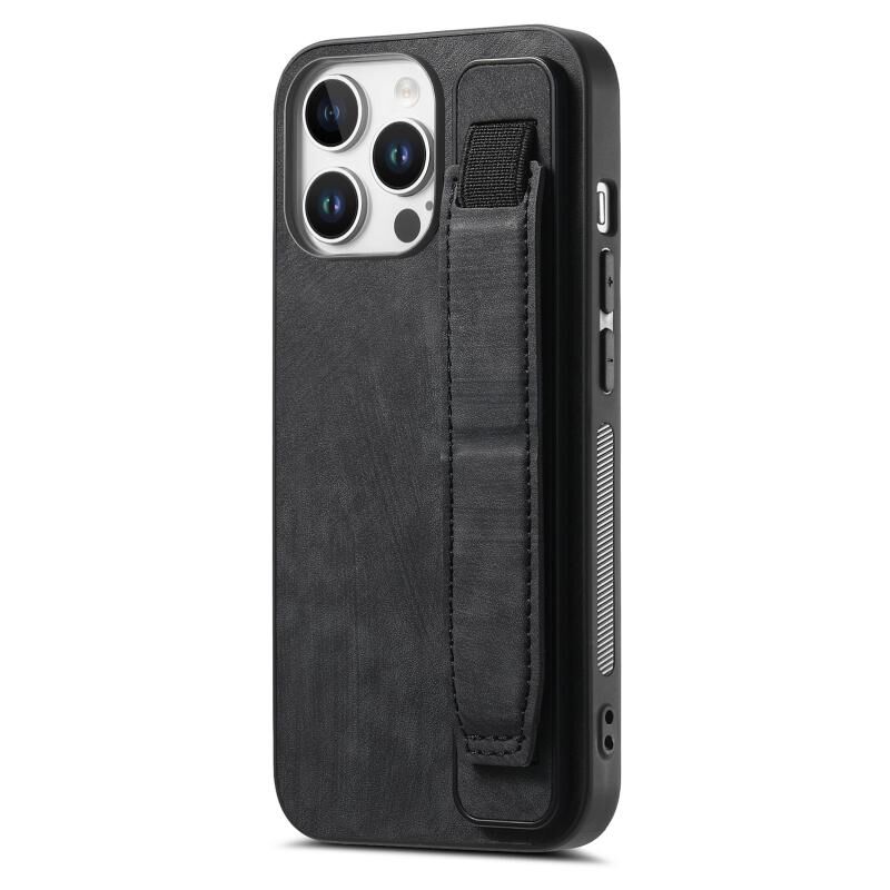 Για iPhone 16 Pro Retro Wristband Holder δέρμα πίσω θήκη τηλεφώνου (Μαύρο)