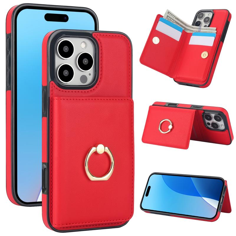 For iPhone 16 Pro RFID Anti-theft Card Ring Holder Phone Case(Red)