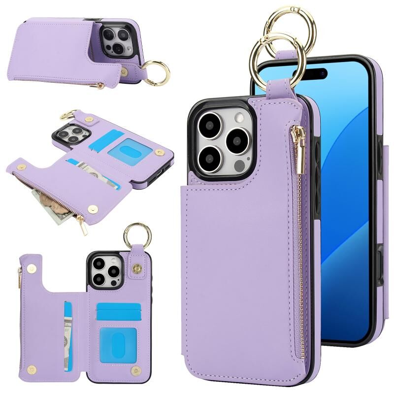 Θήκη τηλεφώνου για iPhone 16 Pro RFlD αντι-κλοπής με διπλή αγκράφα, δακτύλιο και φερμουάρ κάρτας (Μαύρο)