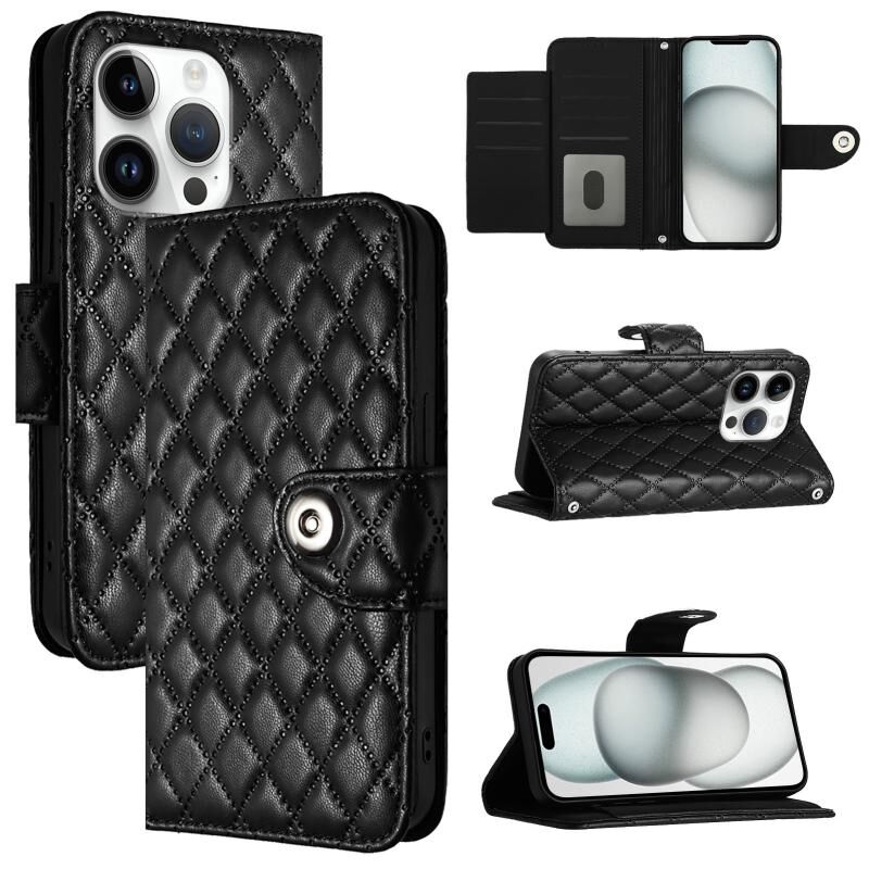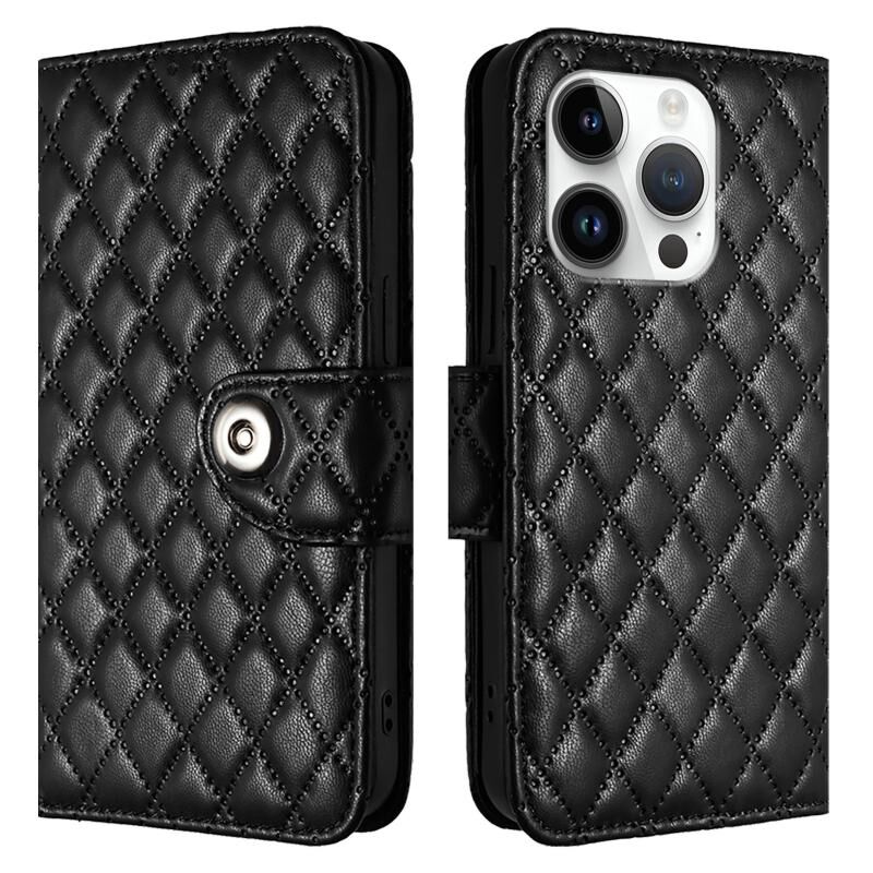For iPhone 16 Pro Rhombic Texture Flip Leather Phone Case with Lanyard(Black)