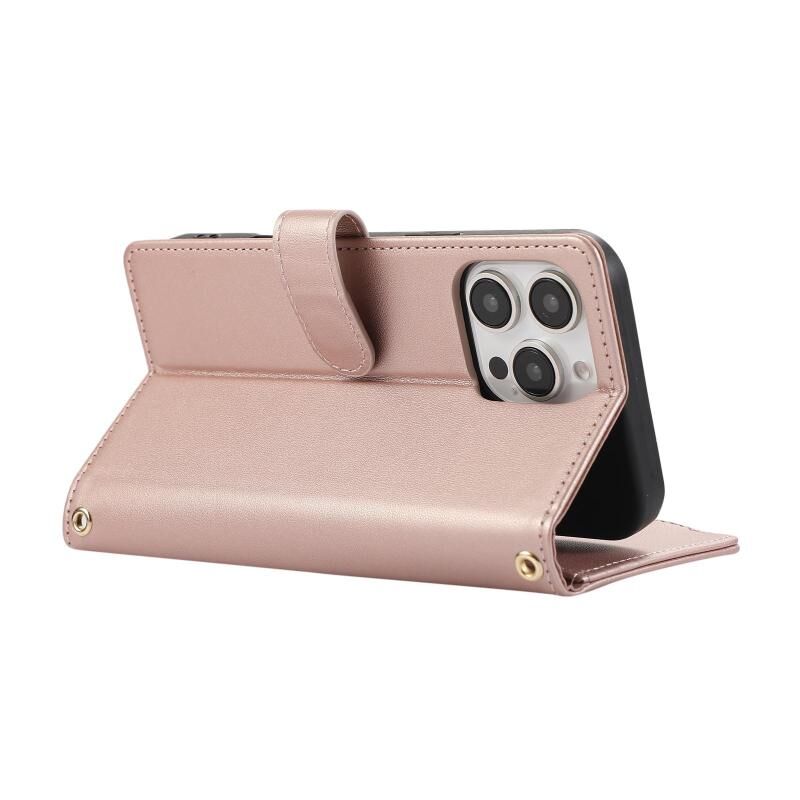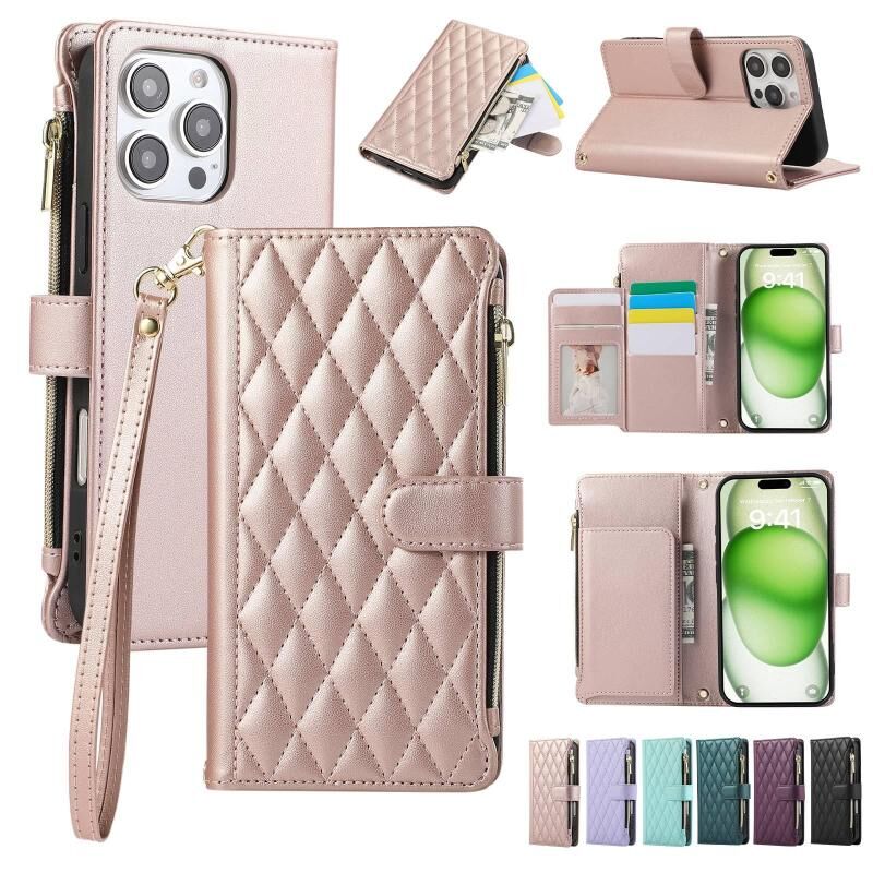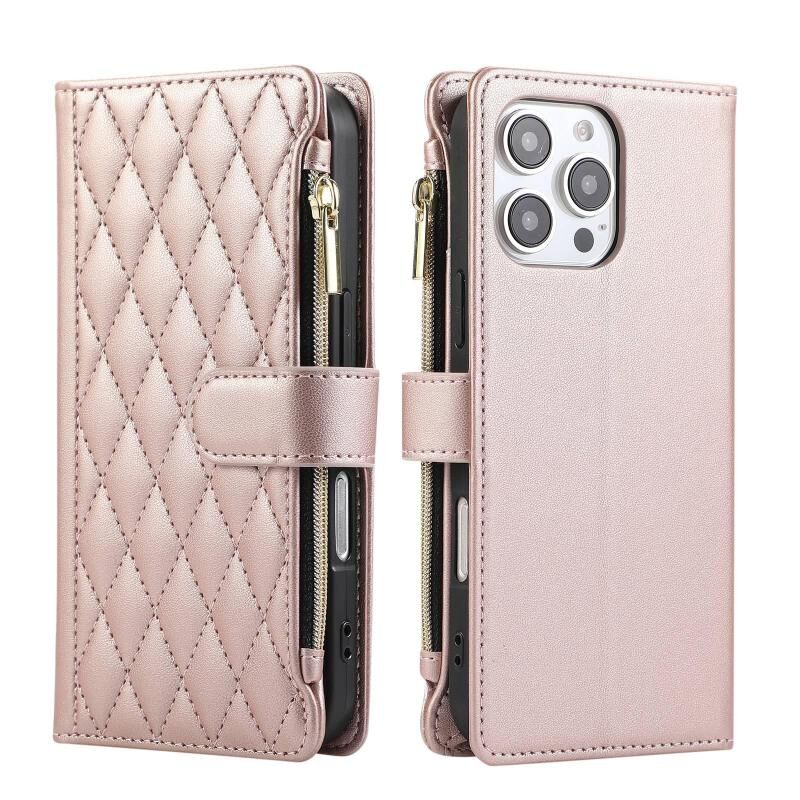 For iPhone 16 Pro Rhombic Zipper Wallet Leather Phone Case(Rose Gold)