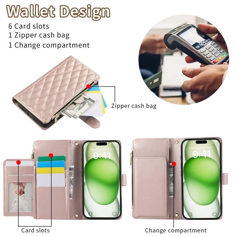 5. Multi-card Wallet Function: Multiple card slots and zipper wallet pockets, cash compartments can store your credit cards and daily small bills.