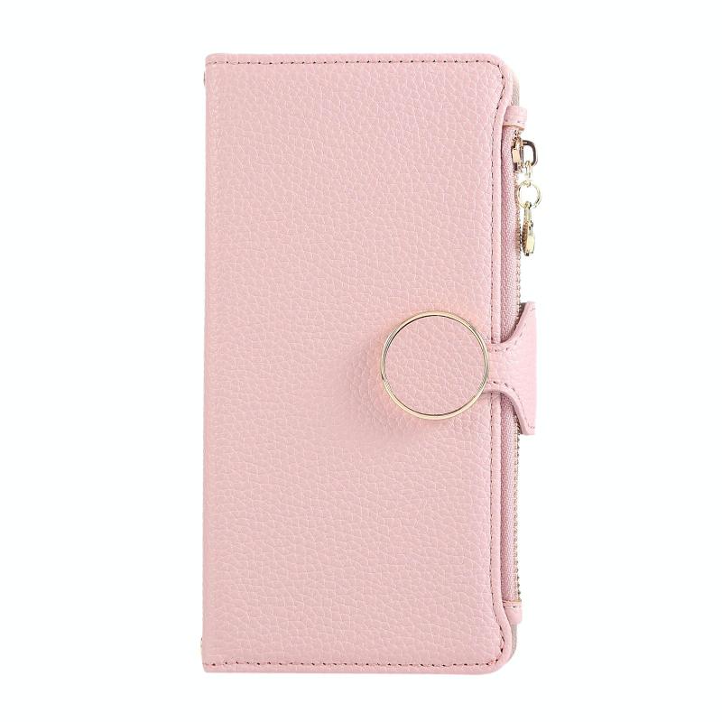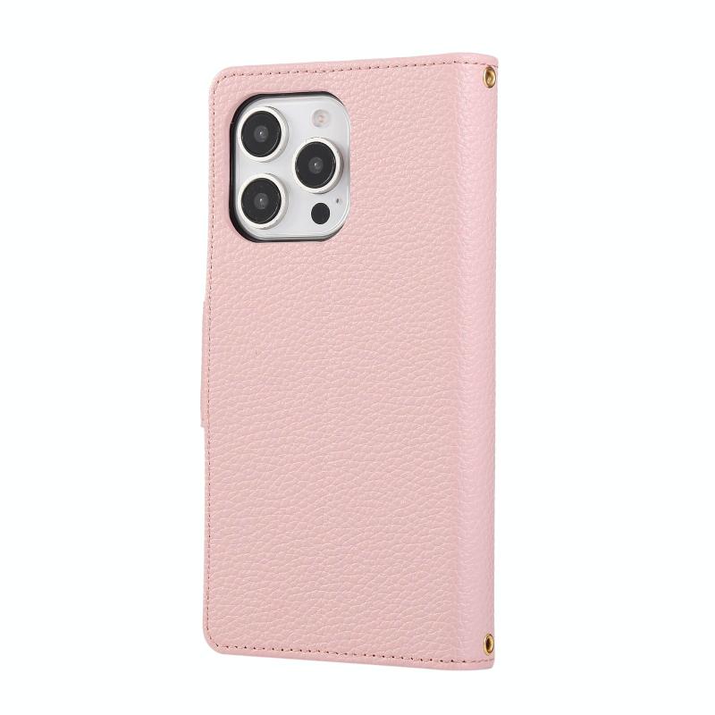 Για iPhone 16 Pro Δερμάτινη Θήκη Πορτοφόλι με Λουρί Ώμου & Αγκράφα (Ροζ)