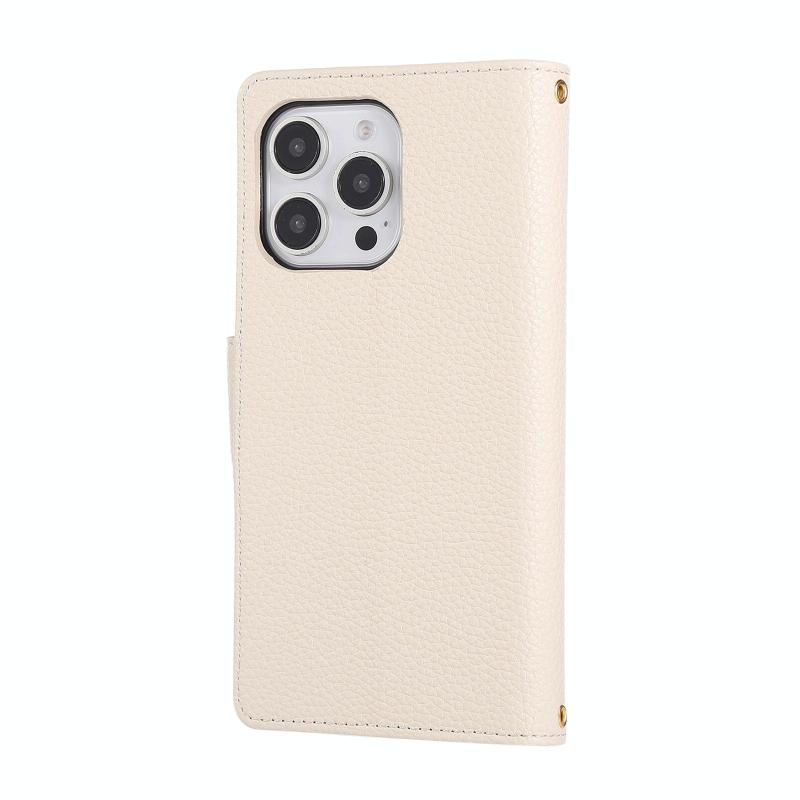 Για iPhone 16 Pro Δερμάτινη Θήκη Πορτοφόλι με Λουρί Ώμου & Αγκράφα (Λευκό)