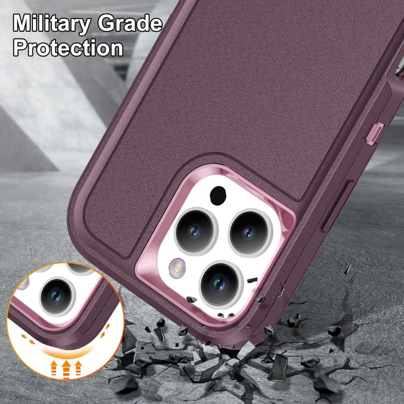 For iPhone 16 Pro Rugged PC + Silicone Phone Case with Holder(Purple+Pink)