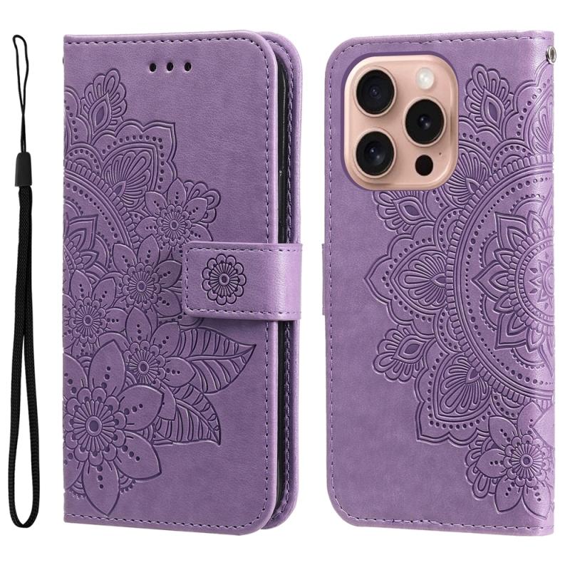Θήκη τηλεφώνου από δέρμα με ανάγλυφα επτά πέταλα λουλουδιών για iPhone 16 Pro (Χρυσορόζ)