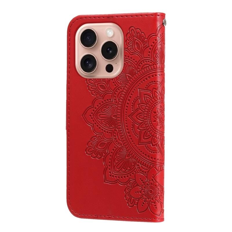 For iPhone 16 Pro Seven-petal Flowers Embossing Leather Phone Case(Red)