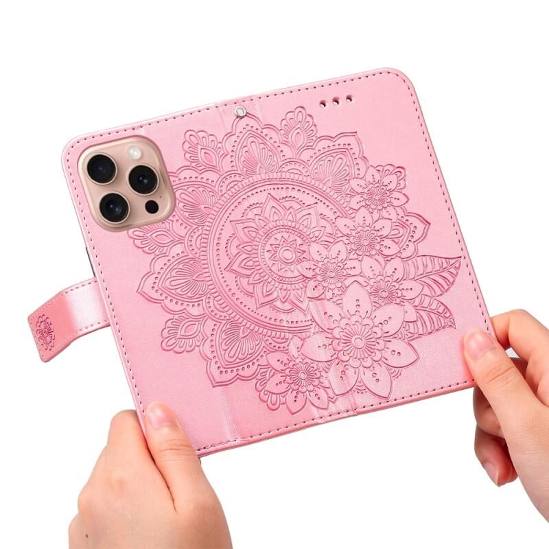 For iPhone 16 Pro Seven-petal Flowers Embossing Leather Phone Case(Rose Gold)