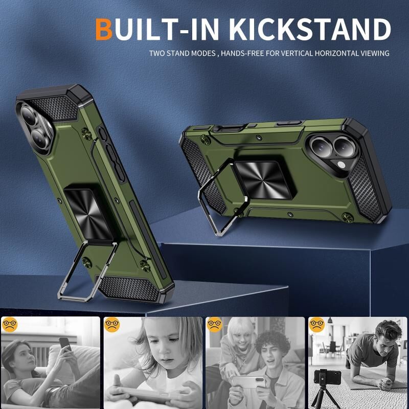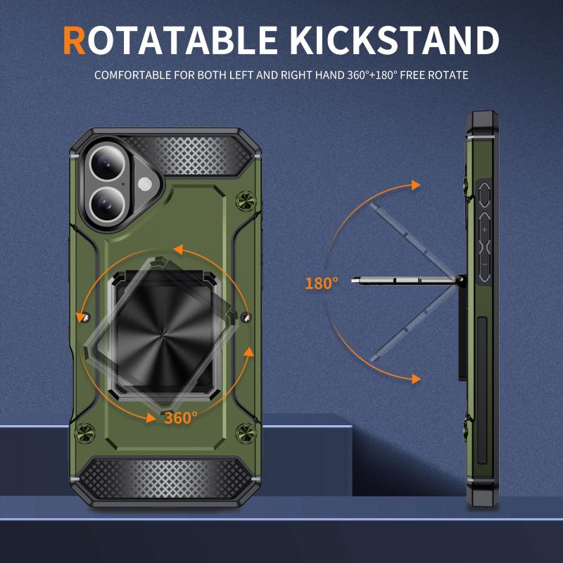 For iPhone 16 Pro Shockproof Metal Holder Phone Case(Olive Green)