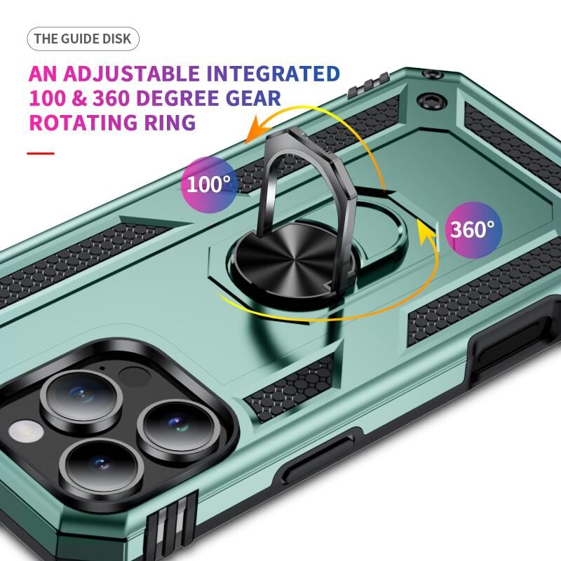 For iPhone 16 Pro Shockproof TPU Hybrid PC Phone Case with Holder(Dark Green)