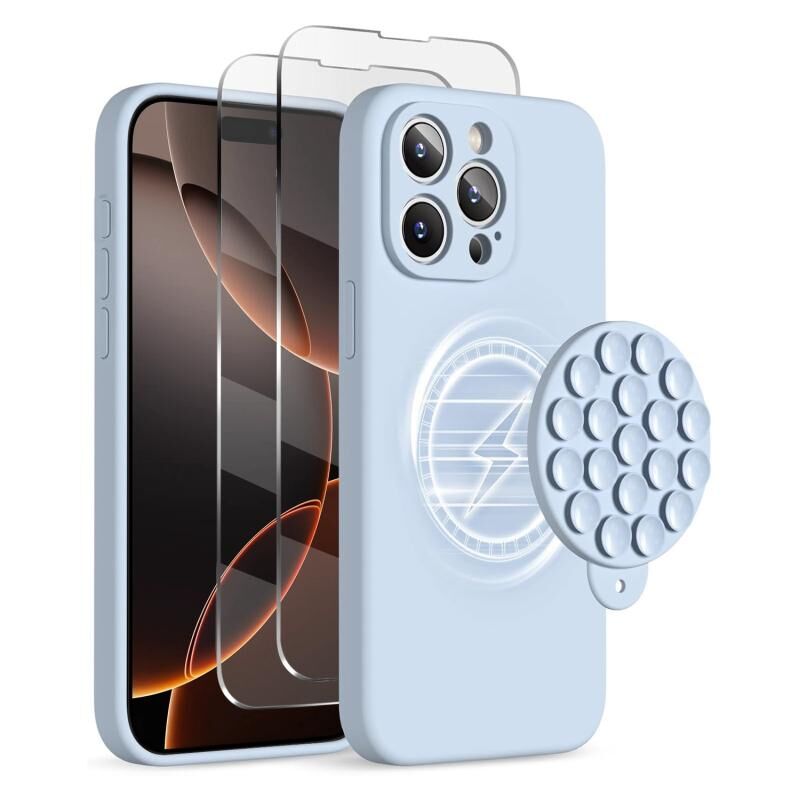 Θήκη τηλεφώνου MagSafe για iPhone 16 Pro από σιλικόνη με βεντούζα και προστατευτική μεμβράνη οθόνης (Μέντα Πράσινο)