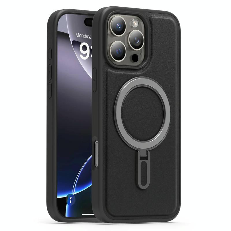 For iPhone 16 Pro Silver Shield MagSafe Holder Shockproof Phone Case(Black)