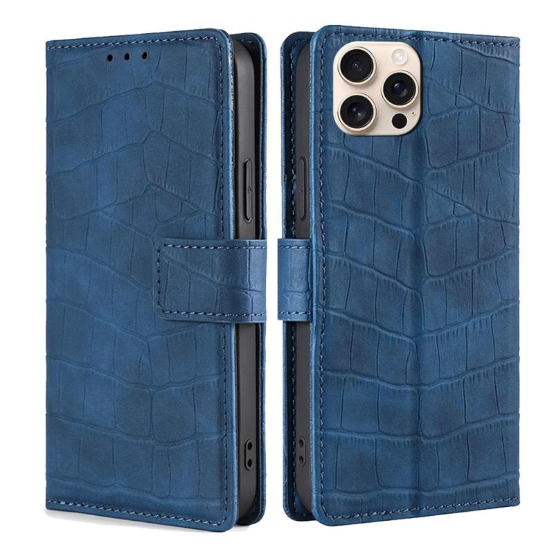 For iPhone 16 Pro Skin Feel Crocodile Magnetic Clasp Leather Phone Case(Blue)