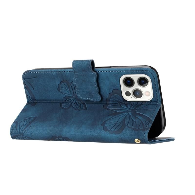 For iPhone 16 Pro Skin-feel Embossed Butterfly Leather Phone Case(Blue)
