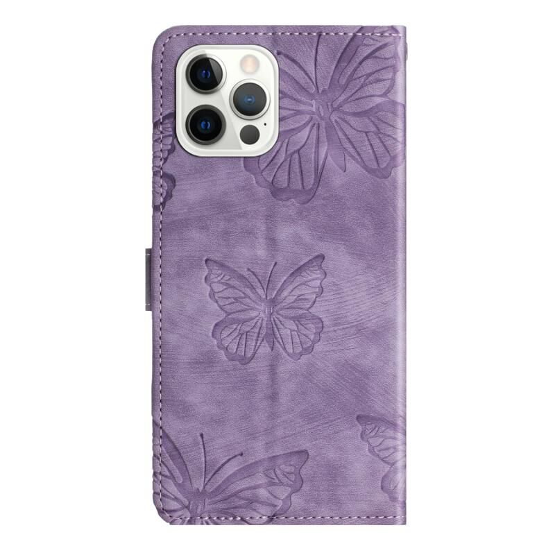 For iPhone 16 Pro Skin-feel Embossed Butterfly Leather Phone Case(Purple)