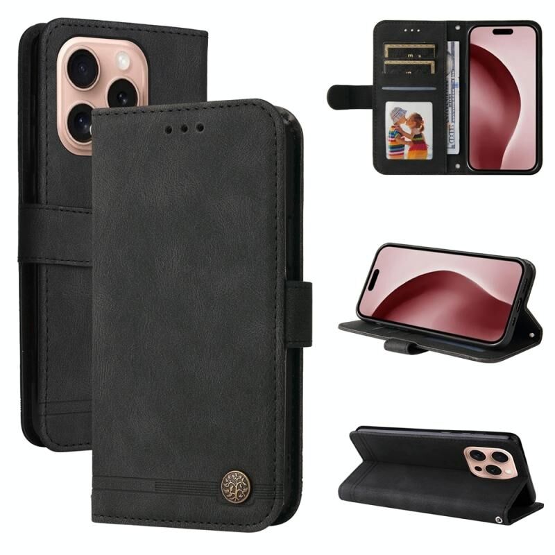 Για iPhone 16 Pro Skin Feel Life Tree Δερμάτινη θήκη τηλεφώνου (μαύρο)