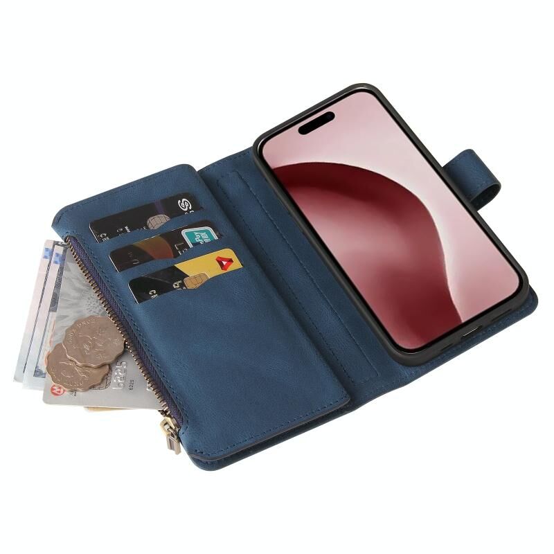 4. Πορτοφόλι με φερμουάρ: Υπερπολλαπλές υποδοχές καρτών μπορούν να χωρέσουν 15 κάρτες. Το διαμέρισμα με φερμουάρ για μετρητά μπορεί να προστατεύσει τα χρήματά σας. Άνετο και πρακτικό για να βγαίνετε έξω με μια τσάντα κινητού!
