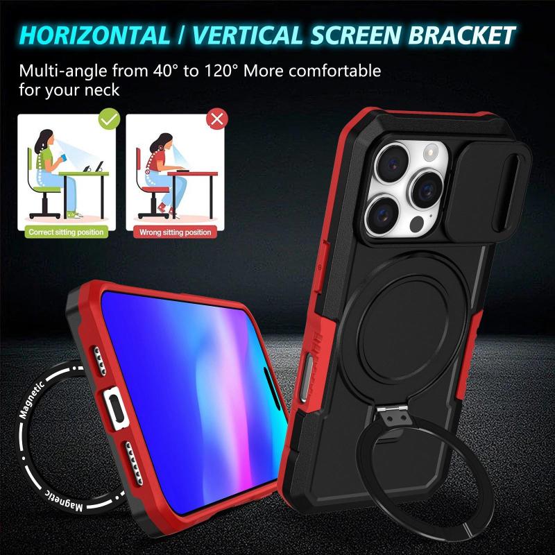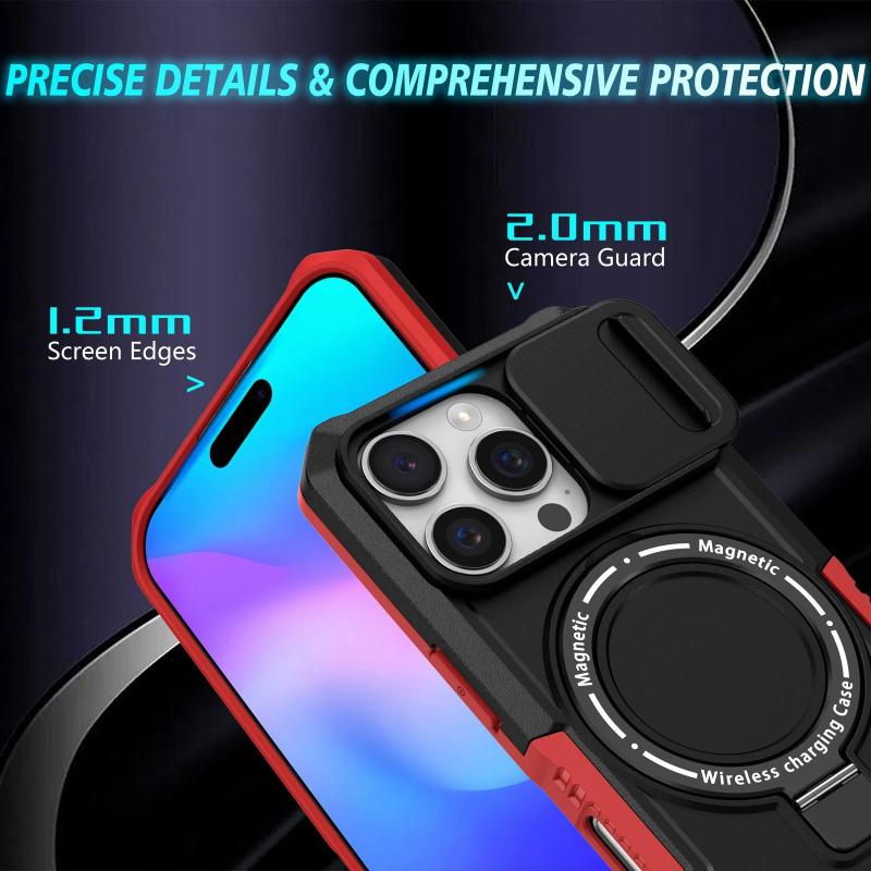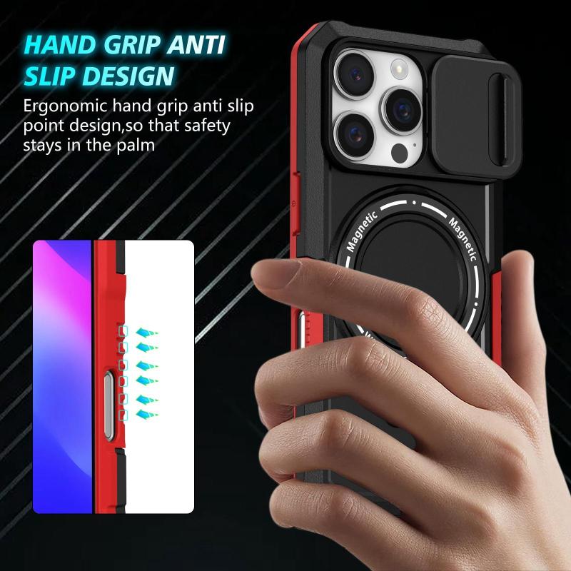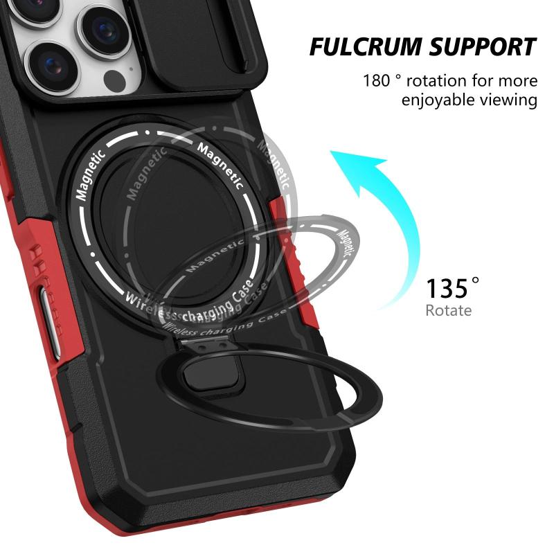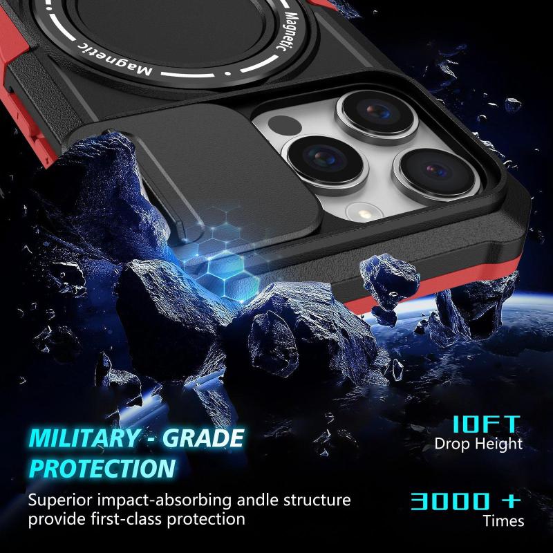 Για iPhone 16 Pro Θήκη με Σχέδιο Camshield, MagSafe & TPU/PC (Μαύρο Κόκκινο)