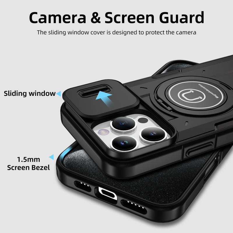 For iPhone 16 Pro Sliding Camshield TPU Hybrid PC Magnetic Holder Phone Case(Black)