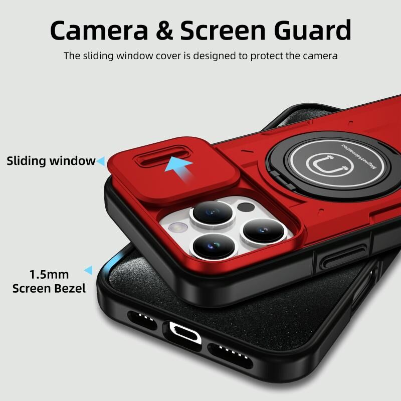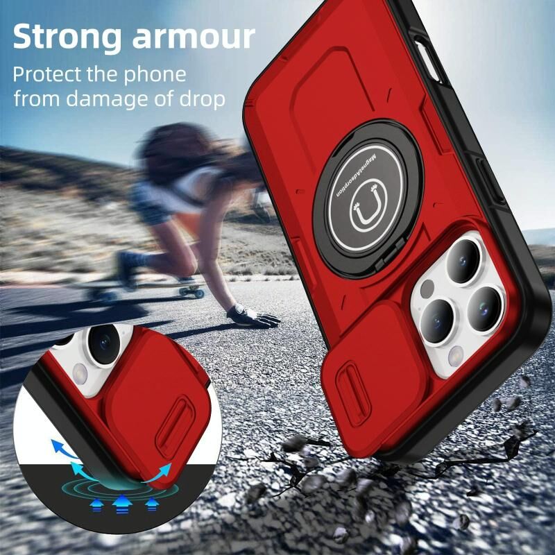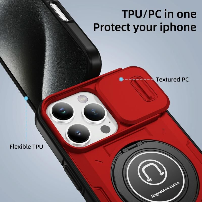 For iPhone 16 Pro Sliding Camshield TPU Hybrid PC Magnetic Holder Phone Case(Red)