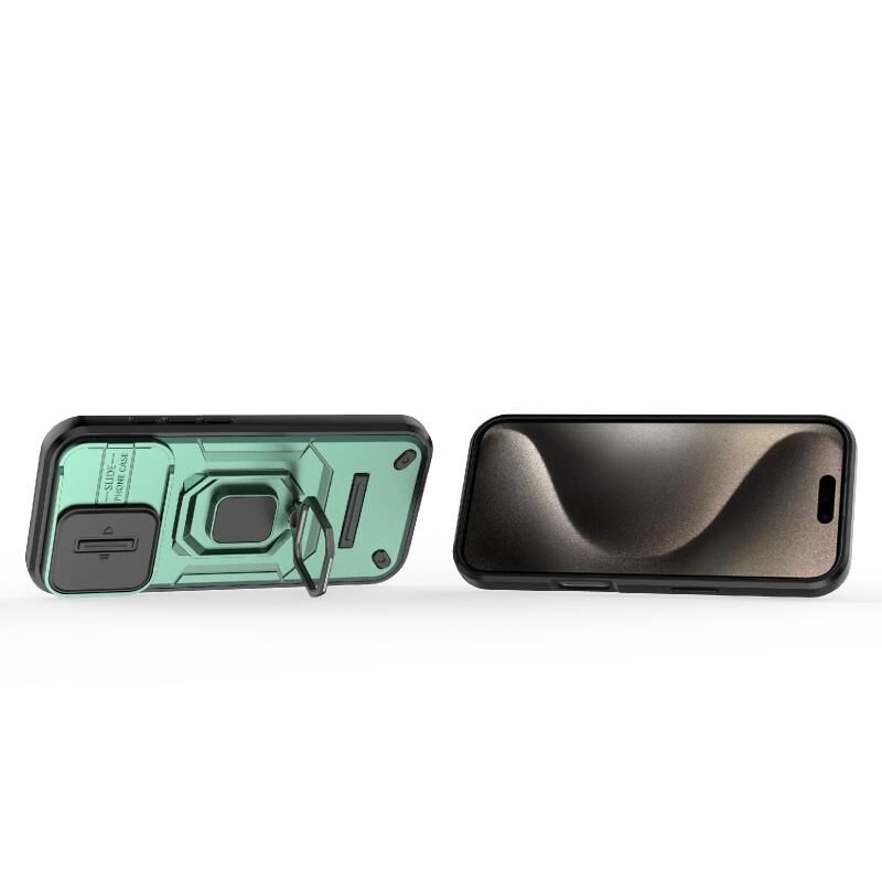 For iPhone 16 Pro Sliding Camshield TPU + PC Shockproof Phone Case with Holder(Green)