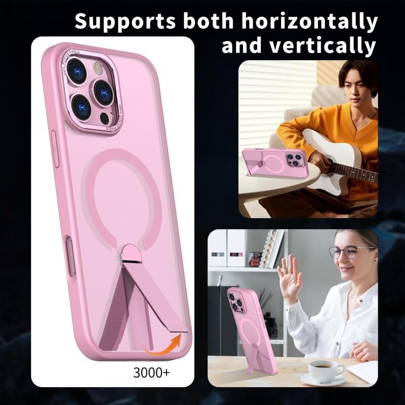 For iPhone 16 Pro Star Shine Series TPU + PC MagSafe Phone Case with Fold Holder(Pink)