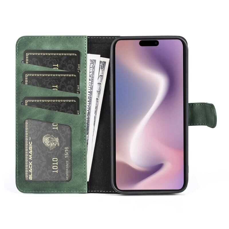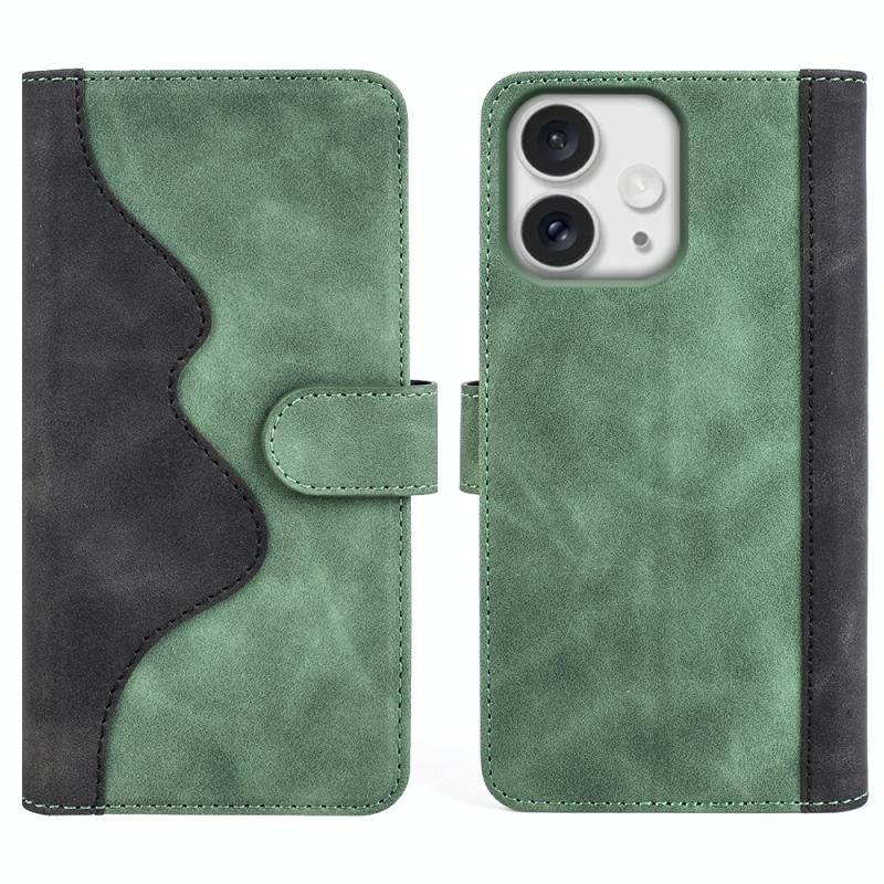 Για το iPhone 16 Pro ραφή οριζόντια Flip δέρμα τηλέφωνο υπόθεση (πράσινο)