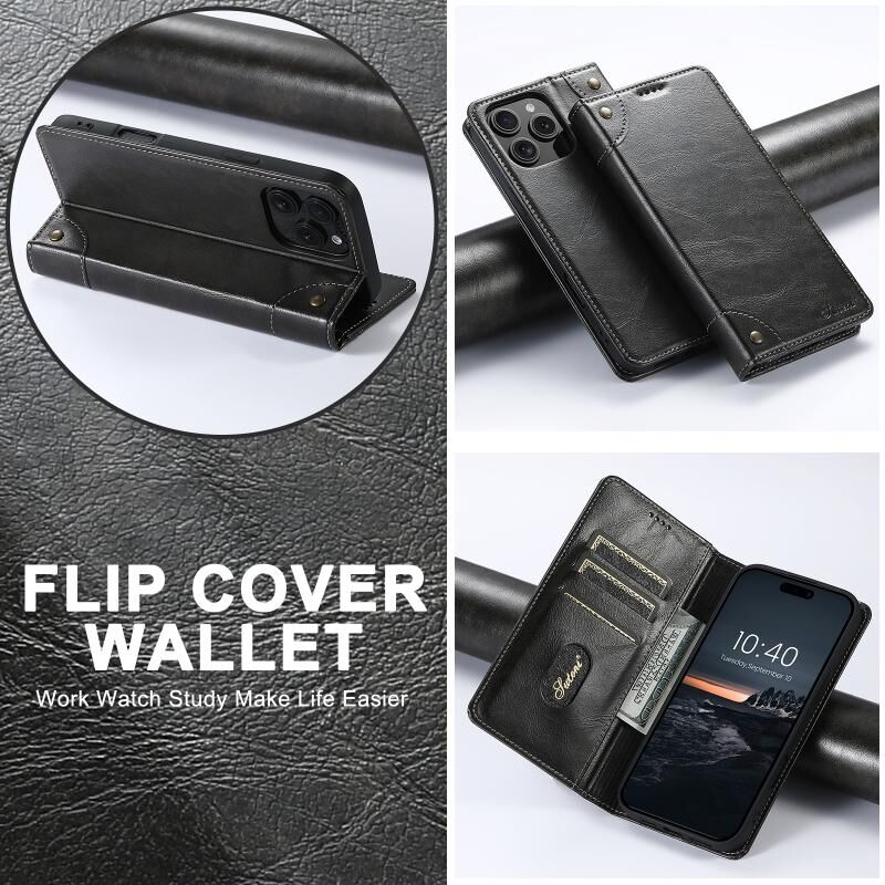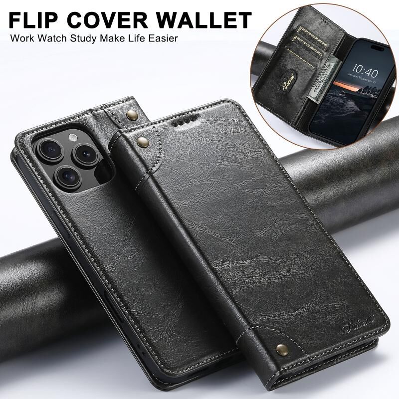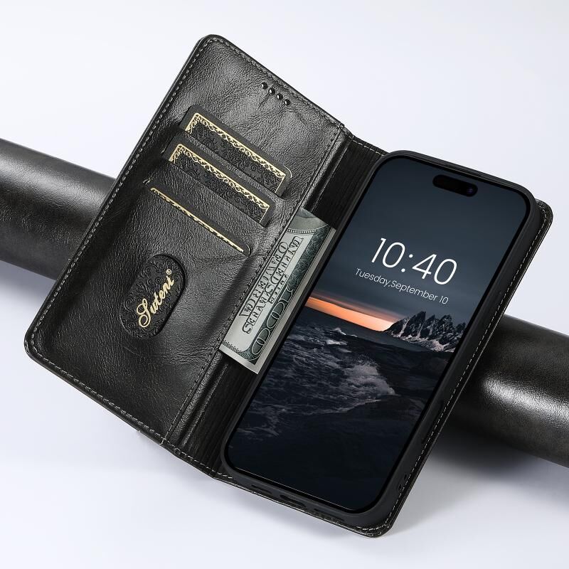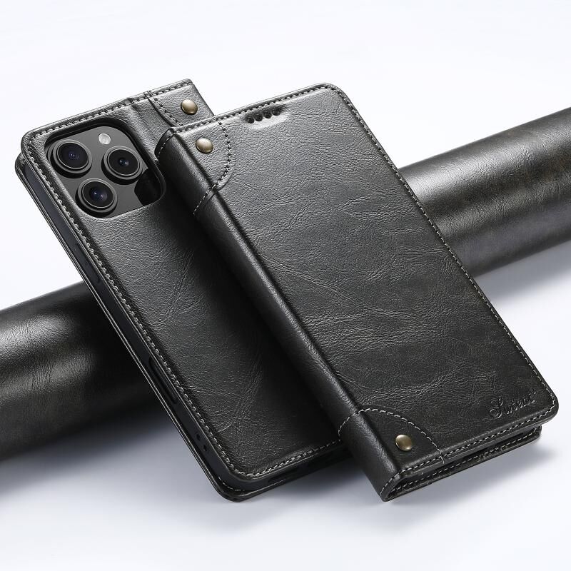 For iPhone 16 Pro Suteni Baroque Calf Texture Buckle Wallet Leather Phone Case(Black) (Suteni)