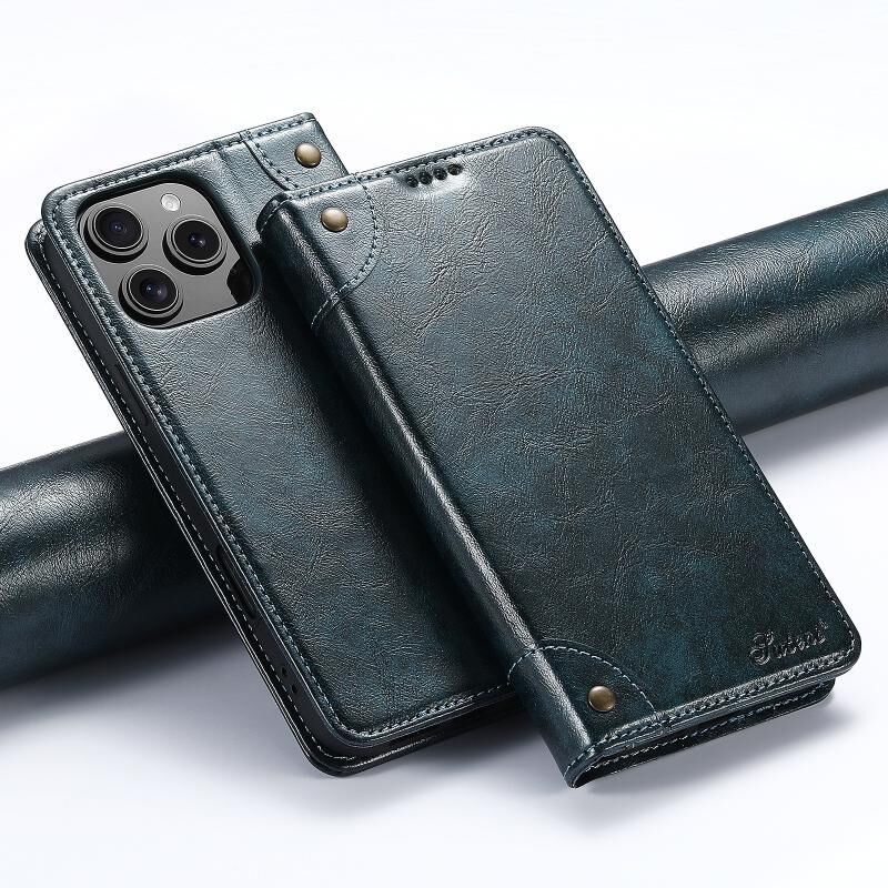 For iPhone 16 Pro Suteni Baroque Calf Texture Buckle Wallet Leather Phone Case(Blue) (Suteni)