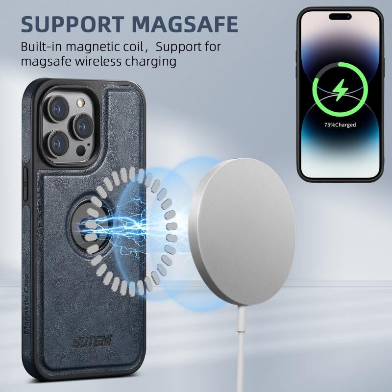 Θήκη τηλεφώνου Suteni G1 Magsafe από δέρμα για iPhone 16 Pro (Μπλε) (Suteni)