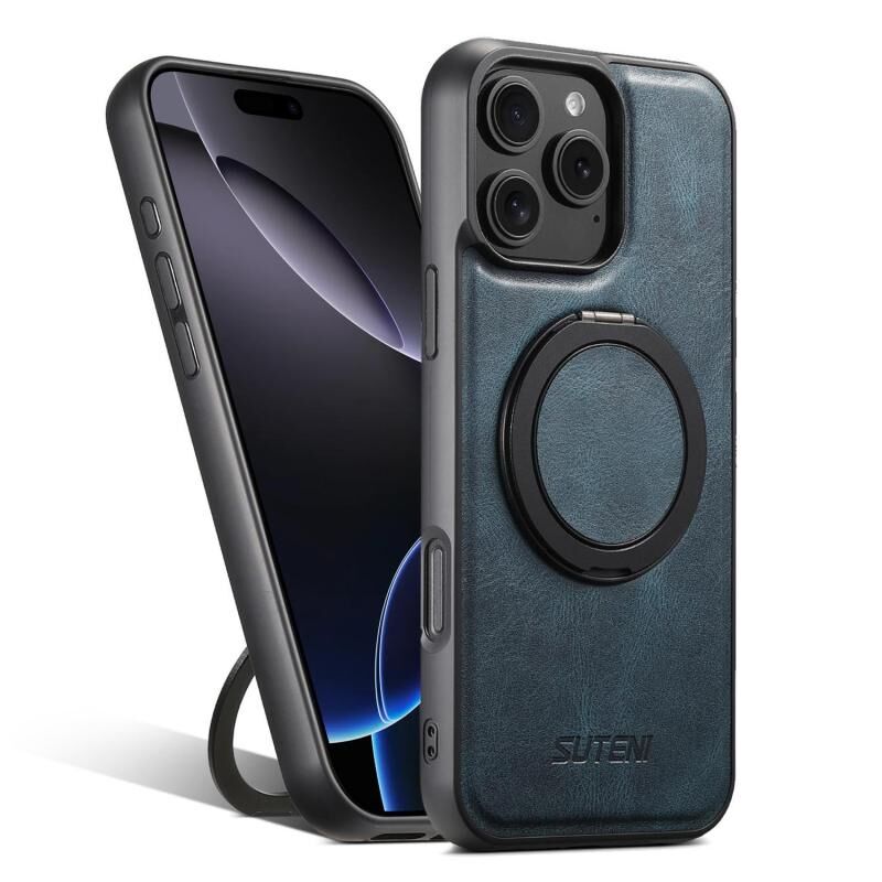 For iPhone 16 Pro Suteni G3 Oil Wax 360 Rotation Holder MagSafe Back Phone Case(Blue) (Suteni)