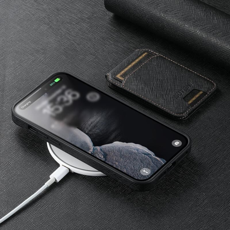 Θήκη τηλεφώνου με κάθετη θήκη καρτών MagSafe, με υφή σταυρωτή, για iPhone 16 Pro (Μαύρο) (Suteni)