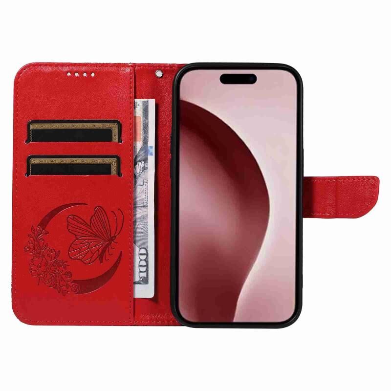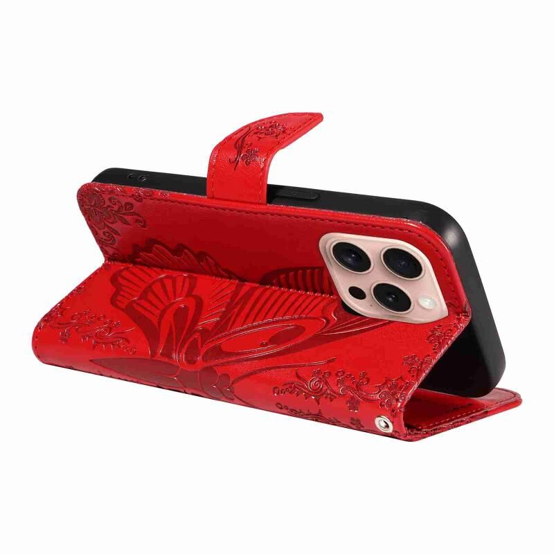 Θήκη τηλεφώνου από δέρμα με ανάγλυφο σχέδιο πεταλούδας Swallowtail για iPhone 16 Pro (Μπλε)