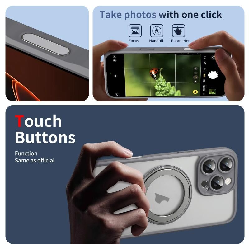 Θήκη τηλεφώνου με περιστρεφόμενη βάση MagSafe, ημιδιαφανές ματ φινίρισμα για iPhone 16 Pro με κουμπί AI (Μαύρο)