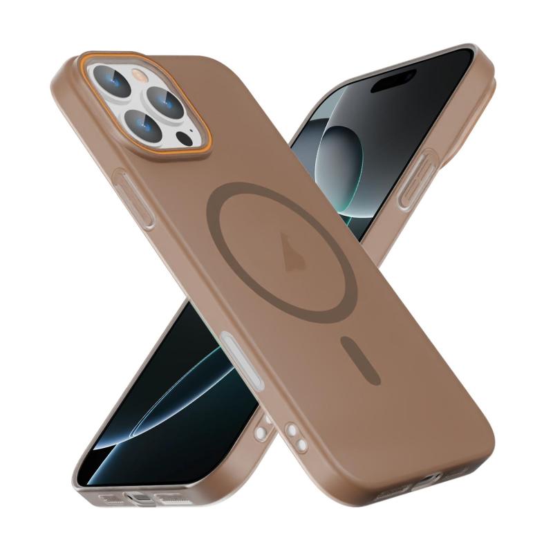 For iPhone 16 Pro Translucent Frosted Skin PC MagSafe Phone Case(Desert Gold)
