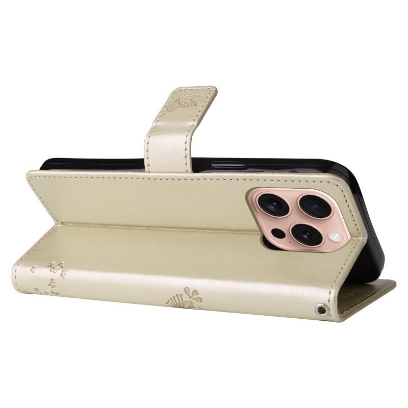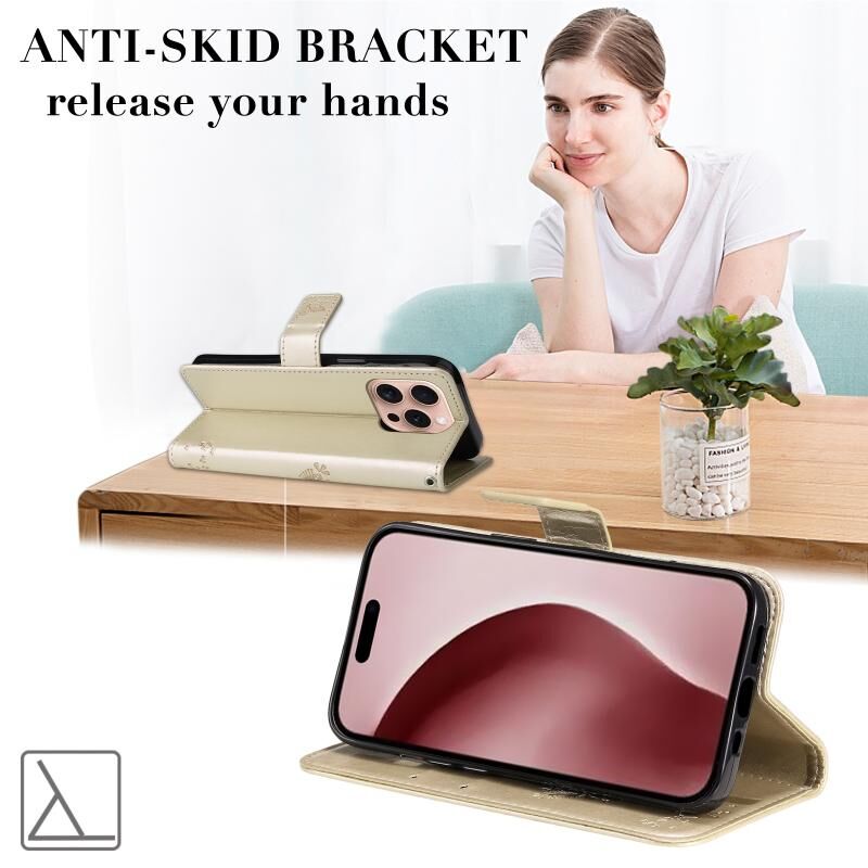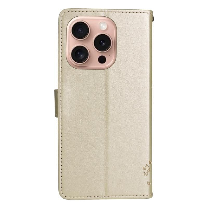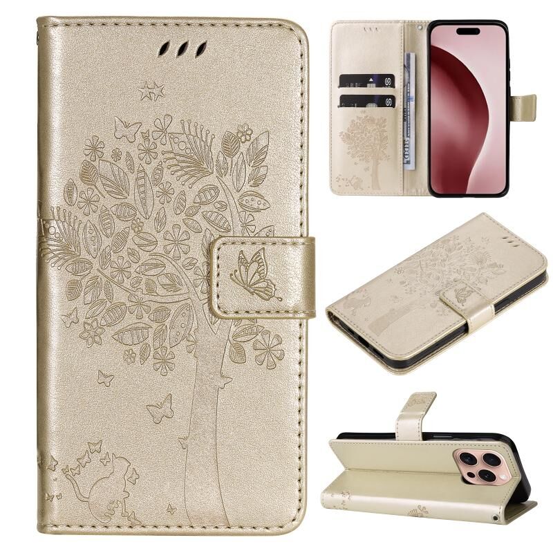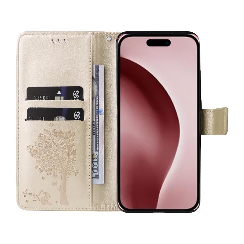 Θήκη τηλεφώνου από δέρμα με σχέδιο ανάγλυφου δέντρου & γάτας, τύπου flip, για iPhone 16 Pro (Πράσινο)