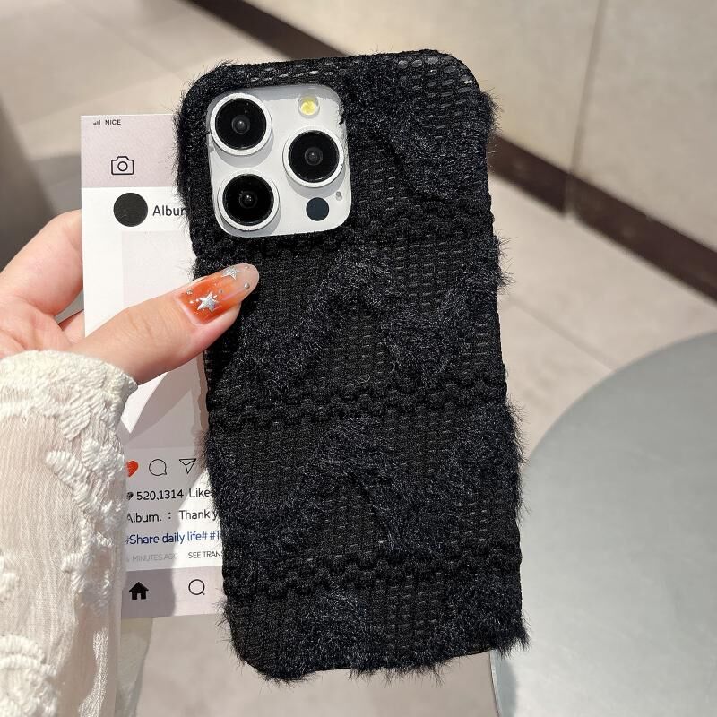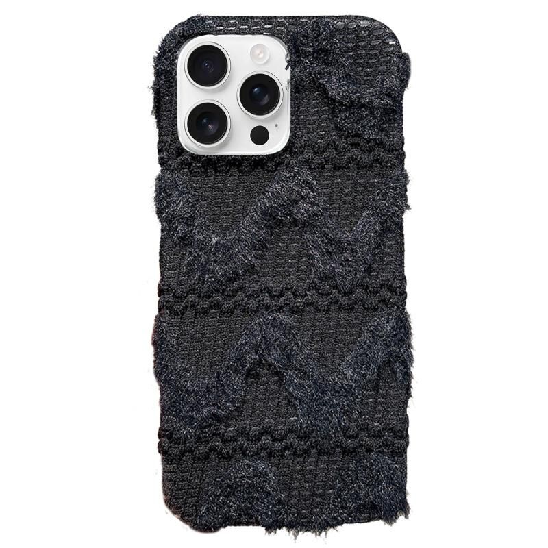 For iPhone 16 Pro W-texture Plush TPU Phone Case(Black)