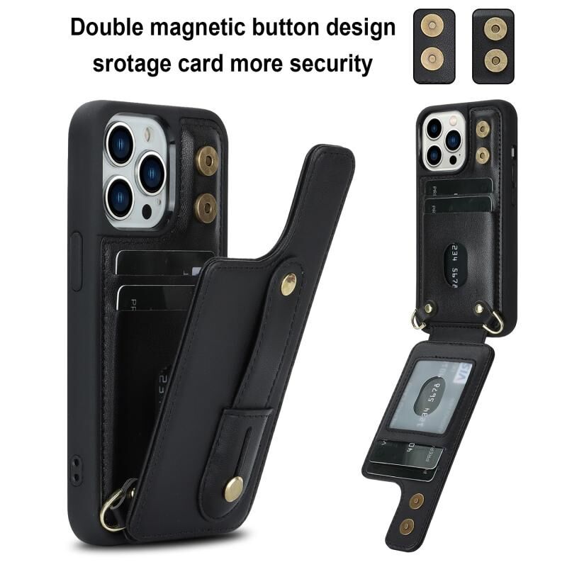 Για iPhone 16 Pro Βραχιόλι Κάθετη Θήκη Πορτοφολιού Κάλυμμα Κινητού με Μακρύ Λουρί (Μαύρο)