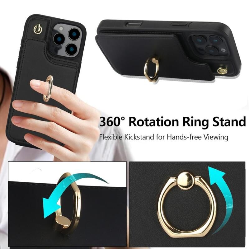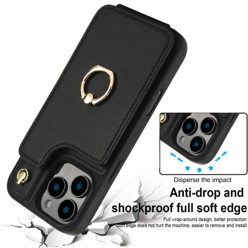 For iPhone 16 Pro YM005 Skin Feel Card Bag Phone Case with Long Lanyard(Black)
